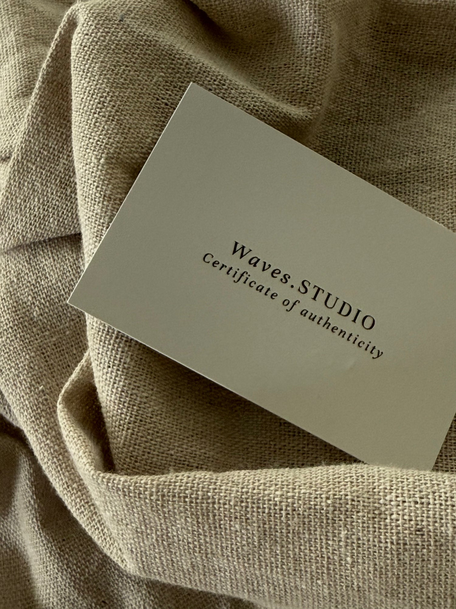 Hos Waves.STUDIO ser vi bæredygtighed som mere end et ord. Det er en måde at tænke og skabe på. For os handler det om omtanke, tålmodighed og ærlighed i alle led af processen. Vi ved, at ingen kan være fuldstændig bæredygtige, men vi kan tage ansvar, stille spørgsmål og konstant søge bedre løsninger. Vi håber, at Waves.STUDIO kan være med til at flytte samtalen om bæredygtighed i kunst og design ikke kun gennem materialevalg, men ved at inspirere til at sænke tempoet, skabe med intention og producere med varig værdi for øje.